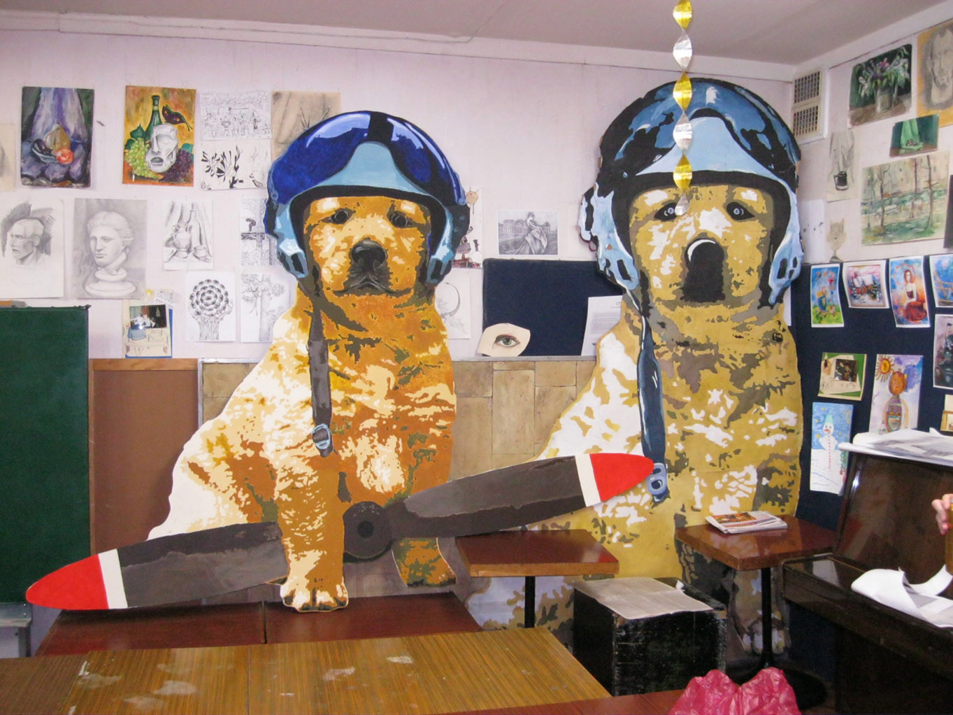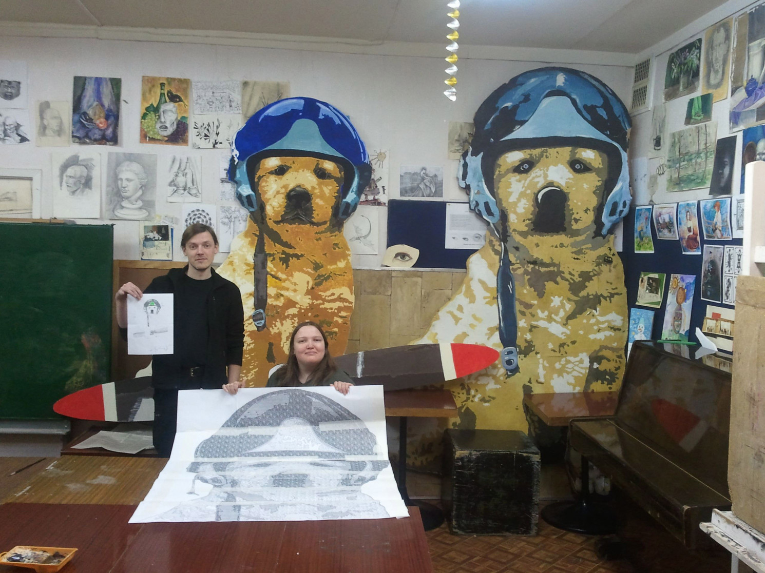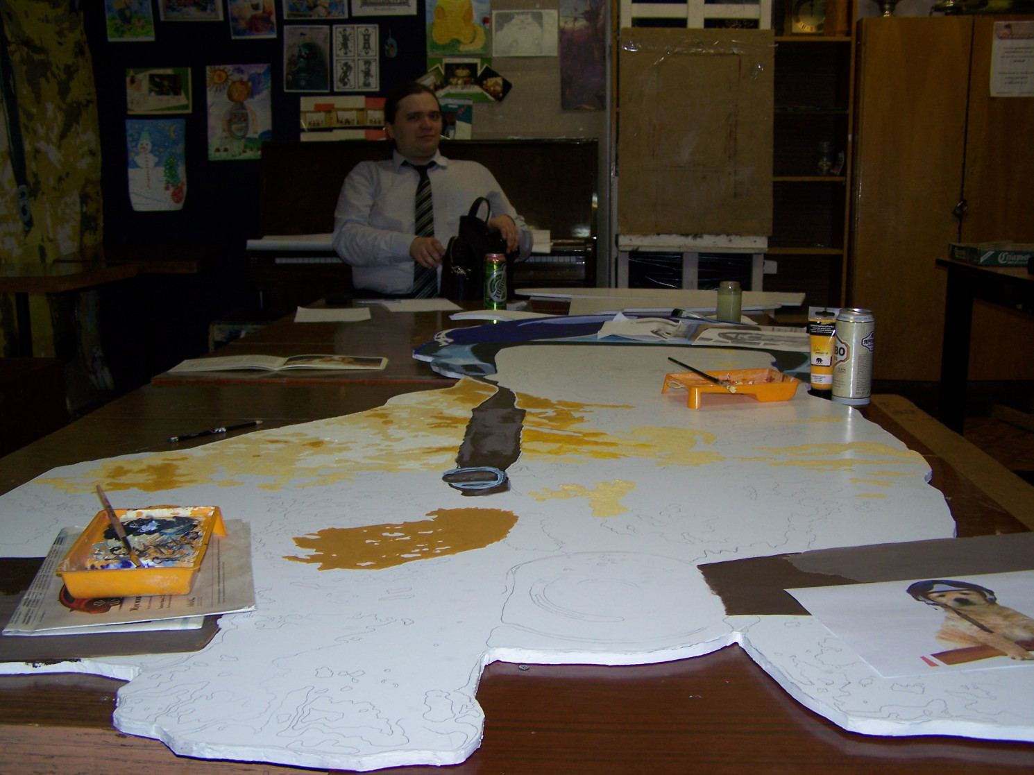 Молодёжная общественно-политическая газета «От винта». Учредители: ППО студентов и аспирантов МАИ и Николай Степанов. Изостудия МАИ по просьбе Николая разработала логотип газеты - симпатичного пёсика. Логотип был изготовлен в большом формате дважды. На фото оба варианта - старый и новый..